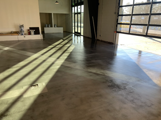 The polished and sealed finish enhanced both the appearance and longevity of the concrete, providing a professional look suited for showroom and sales floor applications.